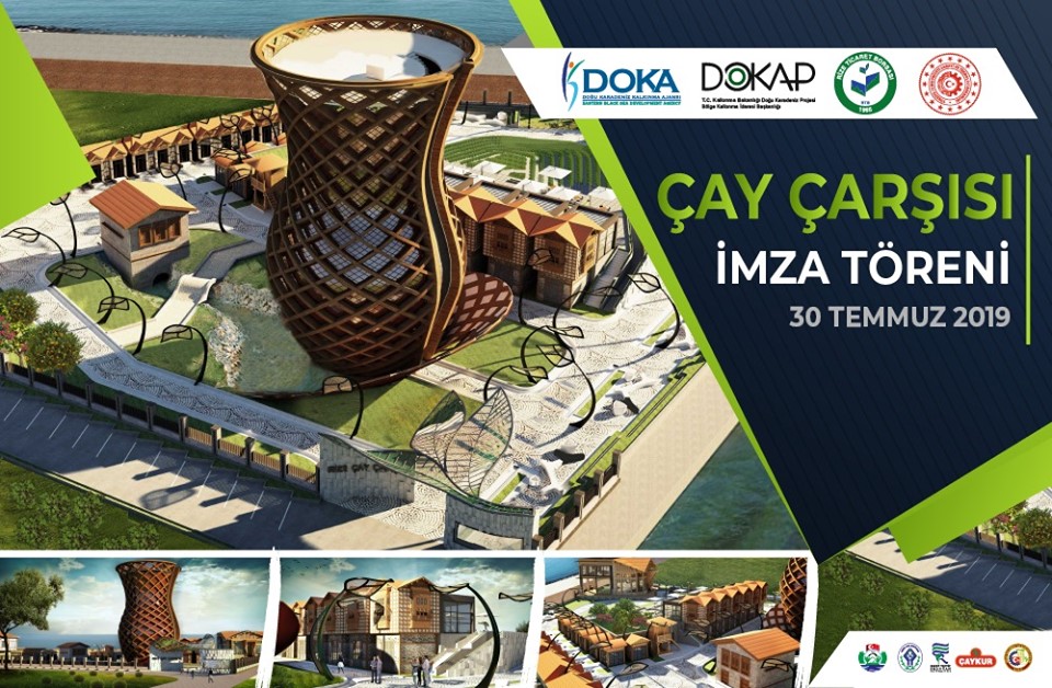 Doğu Karadeniz Kalkınma Ajansı’nın desteklediği, Rize Ticaret Borsası’nın proje sahibi, Rize Ticaret ve Sanayi Odası’nın Proje ortağı olduğu Çay Çarşısı projesi için hazırlanan protokolü Rize Valisi Kemal Çeber, DOKA Genel Sekreteri Onur Adıyaman ve Rize Ticaret Borsası Başkanı Mehmet Erdoğan imzaladı. Proje sahil dolgu alanında hayata geçirilecek
