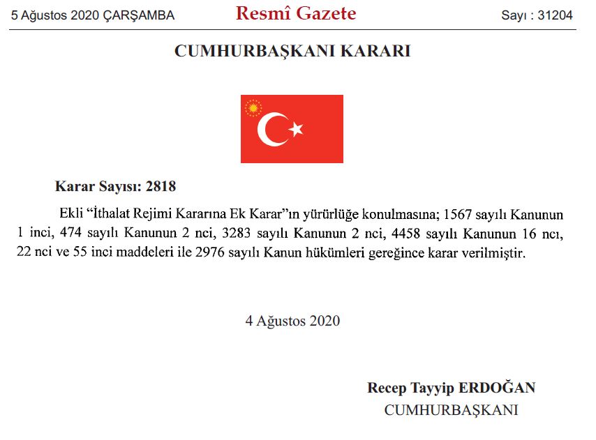 Resmi Gazete’nin 5 Ağustos 2020 tarihli 31204 sayılı yayınında yer alan ithalat rejimi kararına ek Cumhurbaşkanı kararına göre çayda yüzde 145 olan gümrük vergisi yüzde 7’ye indirilirken kilogram başına 7.7 euro’yla 10.3 euro maktu vergi getirilecek. Yani ithal edilecek çayda %7 gümrük vergisi, ortalama 9.5 euro maktu vergi artı %8 KDV ödenerek ürün ithal edilebilecek.